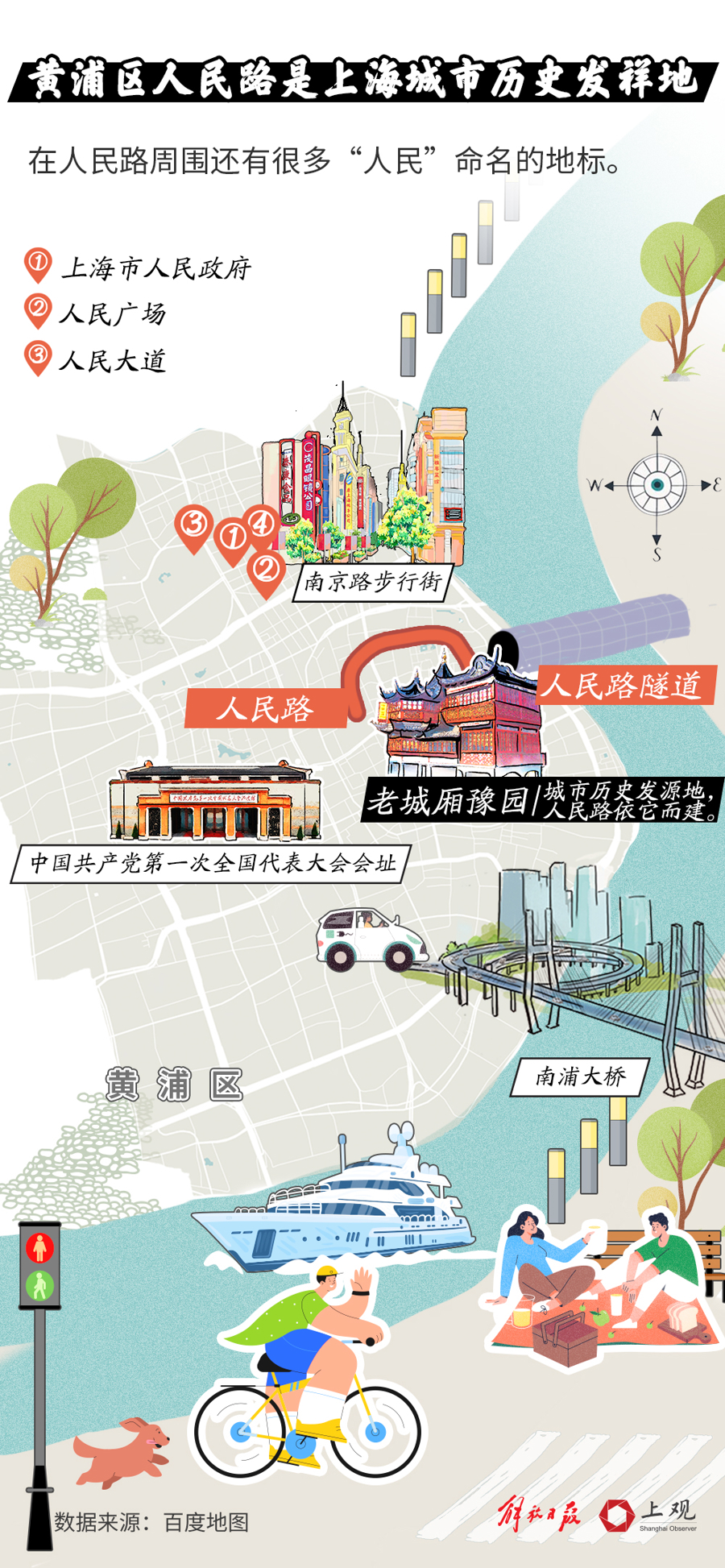 在上海,最常被提及的“人民路”,是途经老城厢、外滩的黄浦区人民路,还有毗邻人民公园和人民广场的人民大道。