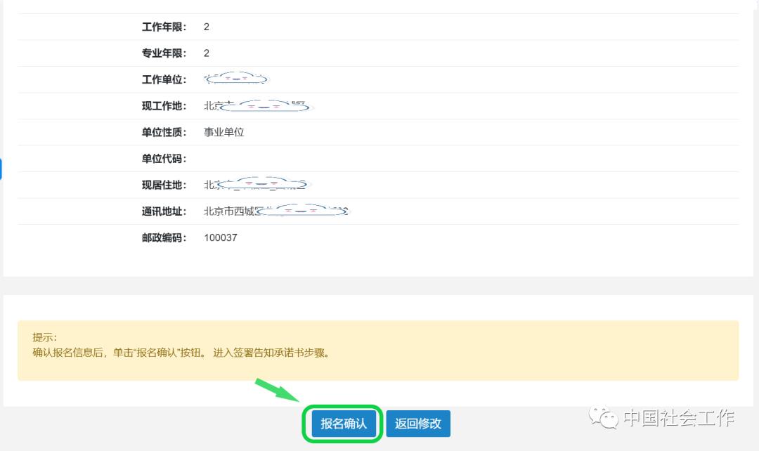 7.再次核对报名信息,确定信息无误后点击“报名确认”。
