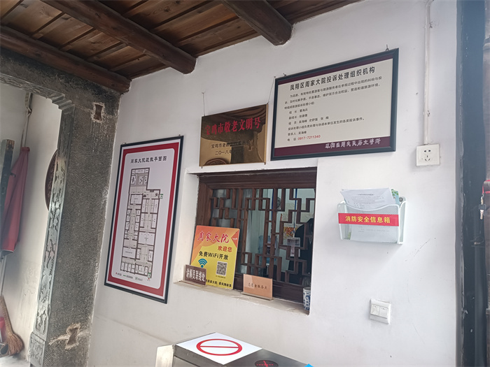 周家大院坐落于凤翔区城关镇文昌巷内,是一座建于明末清初的北方民宅古建四合院,也是从前凤翔府城民居的代表,于2008年被列为陕西省文物保护单位。目前,经过精心修葺的周家大院已成为独具特色的民俗博物馆,向公众开放。