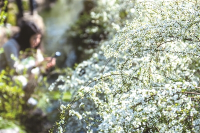 中国茶叶博物馆双峰馆区门前的喷雪花正值盛开期,花期约为一个月,杭州植物园、乌龟潭、杭州城东公园也都可以找到它的身影。