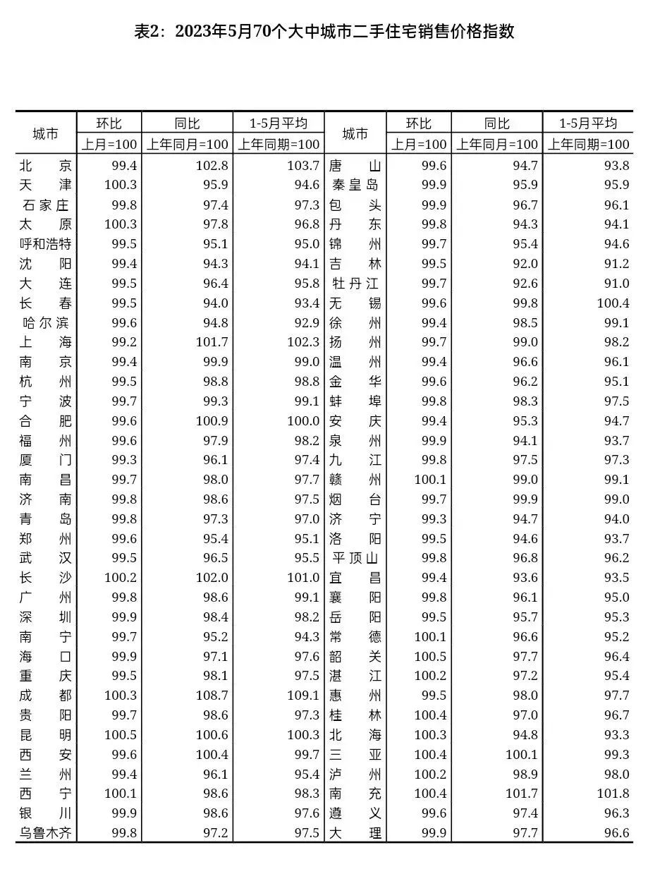 2023年5月份,70个大中城市新建商品住宅销售价格环比整体涨幅回落、二手住宅环比下降。一线城市商品住宅销售价格同比涨幅回落,二三线城市同比总体降势趋缓。