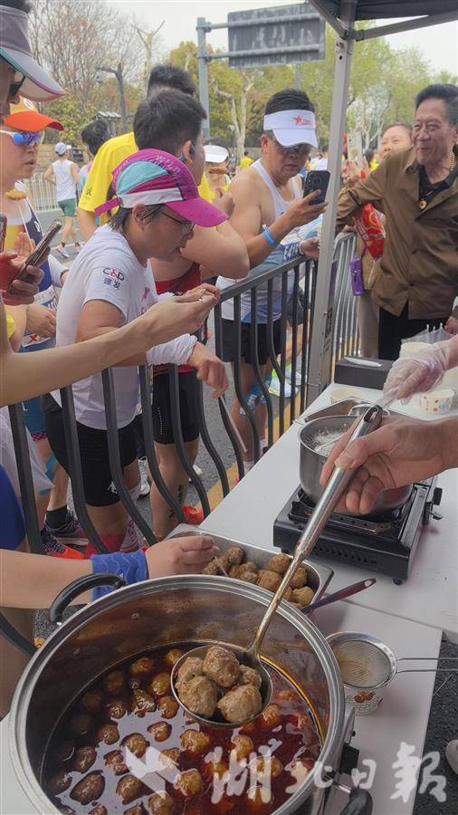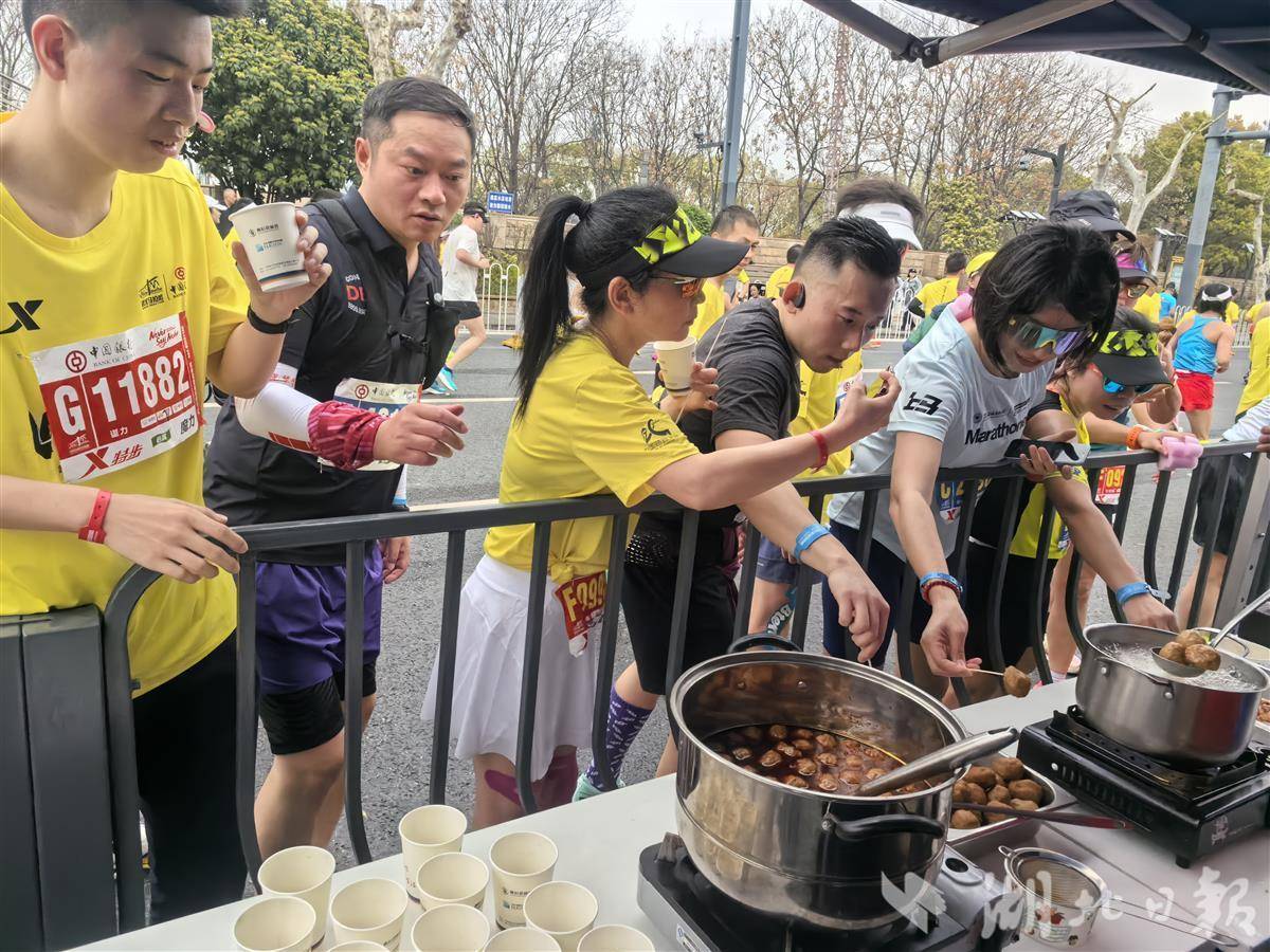 一位来自北京的女选手吃完后说:“太香了,不吃太亏了。”有选手更是笑称:“武汉马拉松的补给太丰富了,跑着跑着来喝咖啡,吃肉圆子、藕夹、牛肉,还怎么跑?”