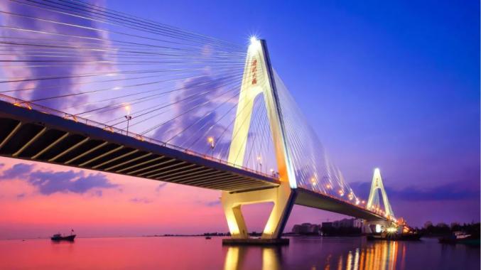 世纪大桥位于赛道25公里的海甸河入海口处,是海口市的标志性建筑之一。大桥全长2663.606米,主桥长636.60米,其标志性构筑物为主桥段的2座钻石型主塔,主塔高度为106.9米。世纪大桥在主桥南北两端共设4座塔楼,8座观光电梯,游客可乘坐电梯至楼顶,俯瞰海上日出和日落、海上以及世纪大桥周边的建筑风光及美景。