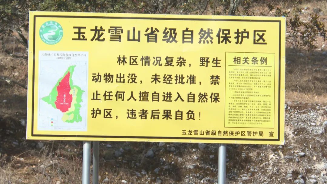 在“牛奶湖”进山路口,记者看到设置有大型警示警告牌,明确标识保护区界限和自然保护区条例处罚规定。记者了解到,此类警示警告牌在玉龙雪山省级自然保护区重点进山路口均有设置。