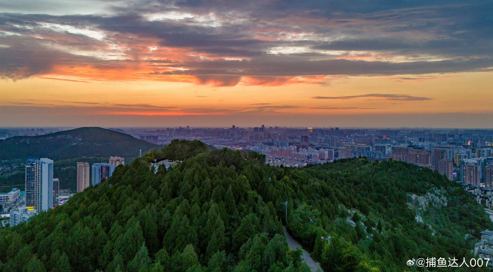 郎茂山位于济南市市中区南部,这里一年四季都是网红打卡地,这座海拔200多米的山体公园,有一条长长的盘山步道,像一条巨龙,穿梭于丛林之间。山顶还有一座供行人休息的凉亭,向北远眺,泉城美景尽收眼底。