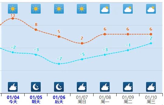 但是,随着新一股冷空气的到来,气温又将掉头下滑,像邢台,今天最高气温可达13℃,7日就跌至2℃。