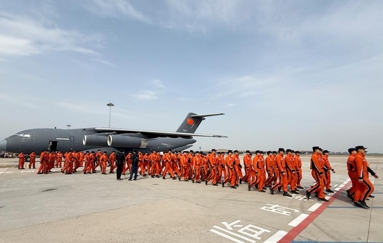 4月9日上午,赴缅甸开展地震救援的中国救援队、由中国军队参与组派的中国国际救援队和中国香港特区救援队完成国际救援任务,乘坐4架中国空军运-20飞机从内比都启程回国。