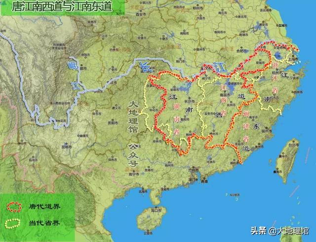唐开元二十一年(公元733年),全国原来的10个道扩展为15个,且有了固定的治所,道从监察区变成了行政区性质,原江南道被一分为三:黔中道、江南西道和江南东道。唐代的江南西道,管辖今江西、湖南的大部分区域,以及安徽、湖南、重庆、广西的小部分区域。