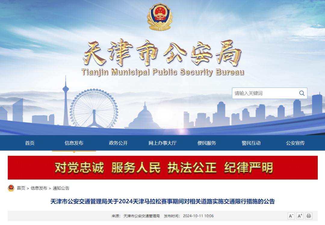 二、为确保天津马拉松赛事期间相关活动的正常进行,10月20日5时开始至比赛结束,对相关道路分时分段采取临时交通管控措施,除持有2024天津马拉松比赛专用车辆通行证的车辆,禁止其他车辆通行。