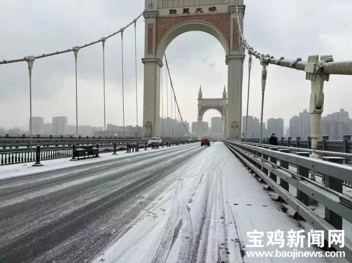 市区联盟大桥因积雪结冰,目前已进行双向交通管制。
