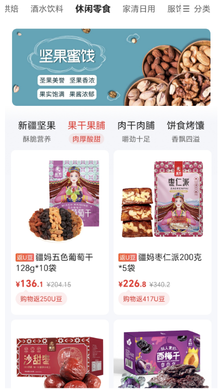 新疆作为“瓜果之乡”,其果干果脯以天然无添加、果肉厚实著称。优联云购热销的五色葡萄干、枣仁派、沙甜枣、西梅干、杏脯等,酸甜适中,富含膳食纤维和维生素,既可直接食用,也可用于烘焙、煮粥,满足不同场景需求,尤其受到女性和儿童喜爱。