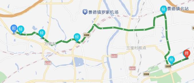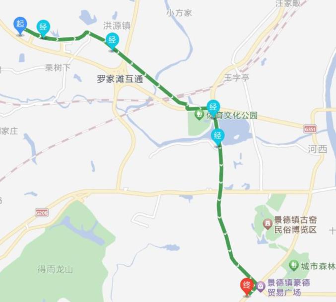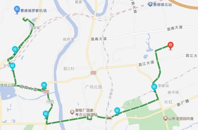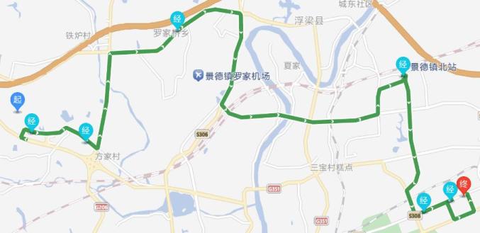 半程、全程终点:景德镇陶博城—景德镇北站、昌江广场、昌河广场、九九九厂站、豪德广场