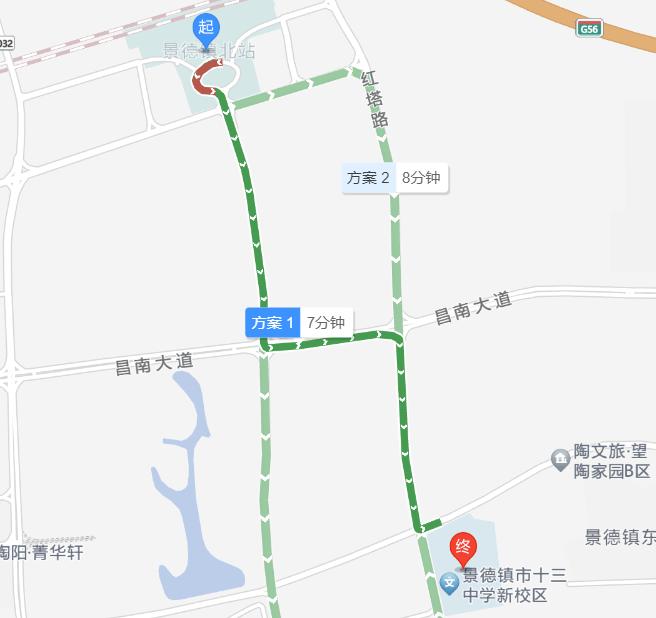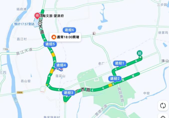 陶新家园—恒大御景北门—珠山区检察院—恒大名都—市规划局—陶溪川路—昌南大道—望津府