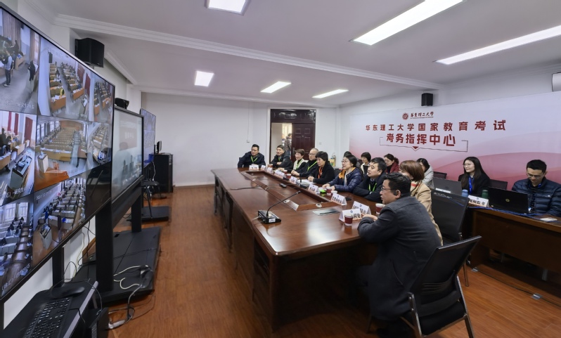 12月21日、22日,2025年全国硕士研究生招生考试举行。在华东理工大学考点,学校提前做好各项准备,全力护航考生“研”途圆梦,确保考点工作平稳有序顺利。校长轩福贞、副校长王慧锋坐镇考务指挥中心,现场指挥考点工作,并在考试期间带领相关部处负责人巡视考场,慰问考务人员和学生志愿者,校长助理、研究生院院长杜文莉陪同。