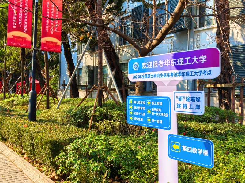 精神食粮同样给考生带来欣喜:华理官微专门设计了研考生专属手机壁纸和电脑分区壁纸,上书“乘风破浪,考研必胜”“星光不负赶路人”等祝福语为考生加油打气;精心制作的考研视频,为考生送去“下一站,上岸”的美好祝愿;校园各处的指示牌上,“‘研’途璀璨 终将上岸”“一‘研’为定”等文字充满了温暖的力量。