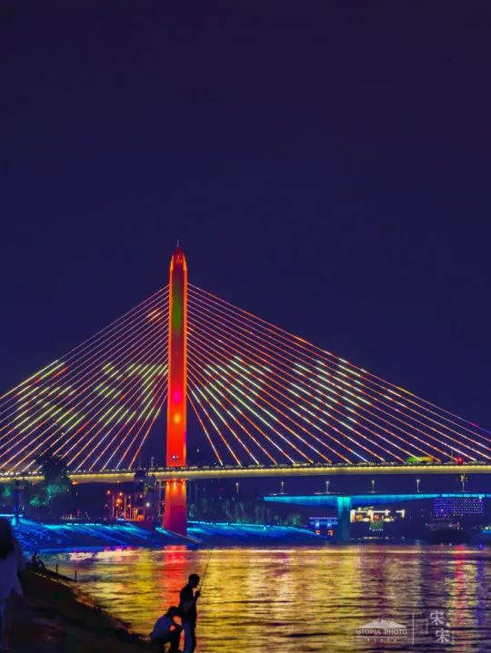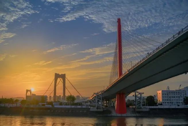 至喜长江大桥如同跃江长虹横跨两岸,委蛇腾跃,生机勃勃。光影点亮夜空时的惊艳,耀眼的夕阳,倒映在静谧的江面上,像极了一幅恬静的诗意画卷。