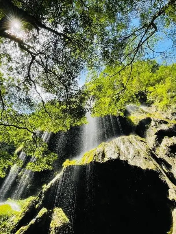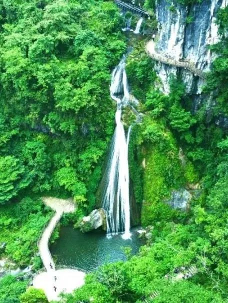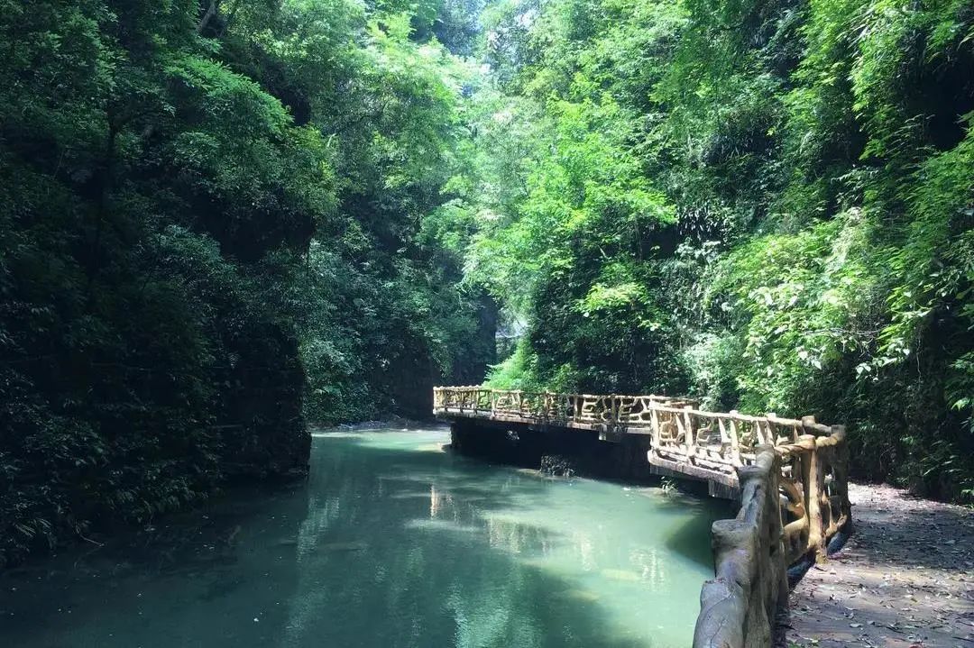 景区除在峡谷中铺设必要的步行道路外,核心区域仍保持原生态风貌。谷内自成小气候,湿度在84%左右,飞瀑成群,森林密布,有古驿道、古栈道、蟾潭瀑布、二跌水瀑布、红岩落泪瀑布、宝莲飞天瀑布、三道关、千亩野生腊梅等景观。