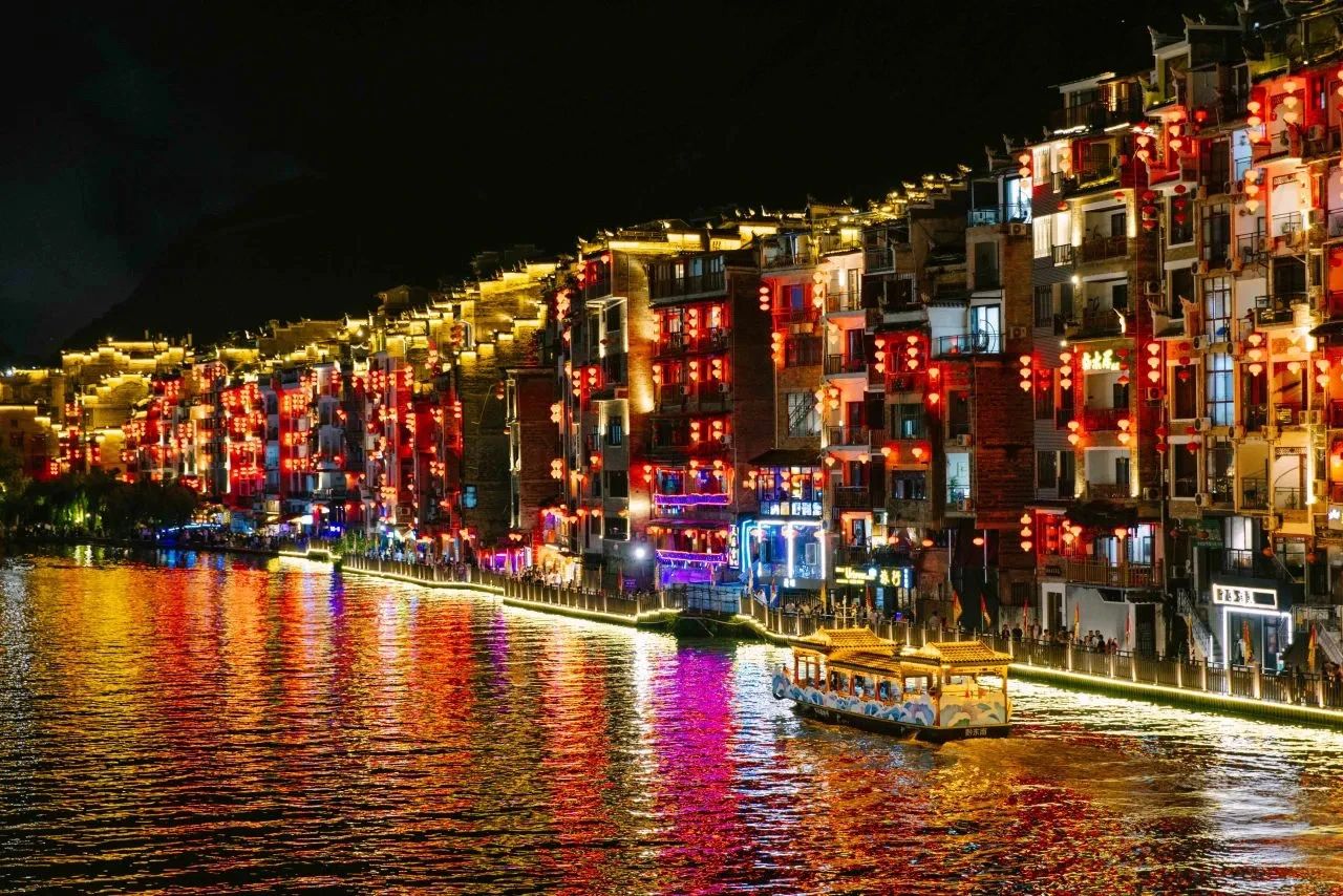 祝圣桥:这座横跨舞阳河的古桥,是镇远古镇的标志性建筑。夜幕降临,桥上灯火通明,与河面倒影交相辉映,形成一幅美丽的夜景画卷。