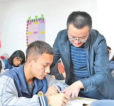 翟腾飞在华山中学辅导学生。