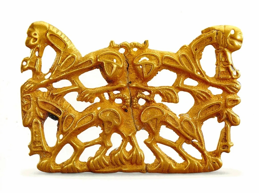 察右前旗出土战国晚期至西汉初期虎咬鹰金饰牌