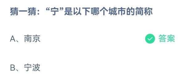猜一猜:“宁”是以下哪个城市的简称?南京还是宁波?蚂蚁庄园4月3日答案