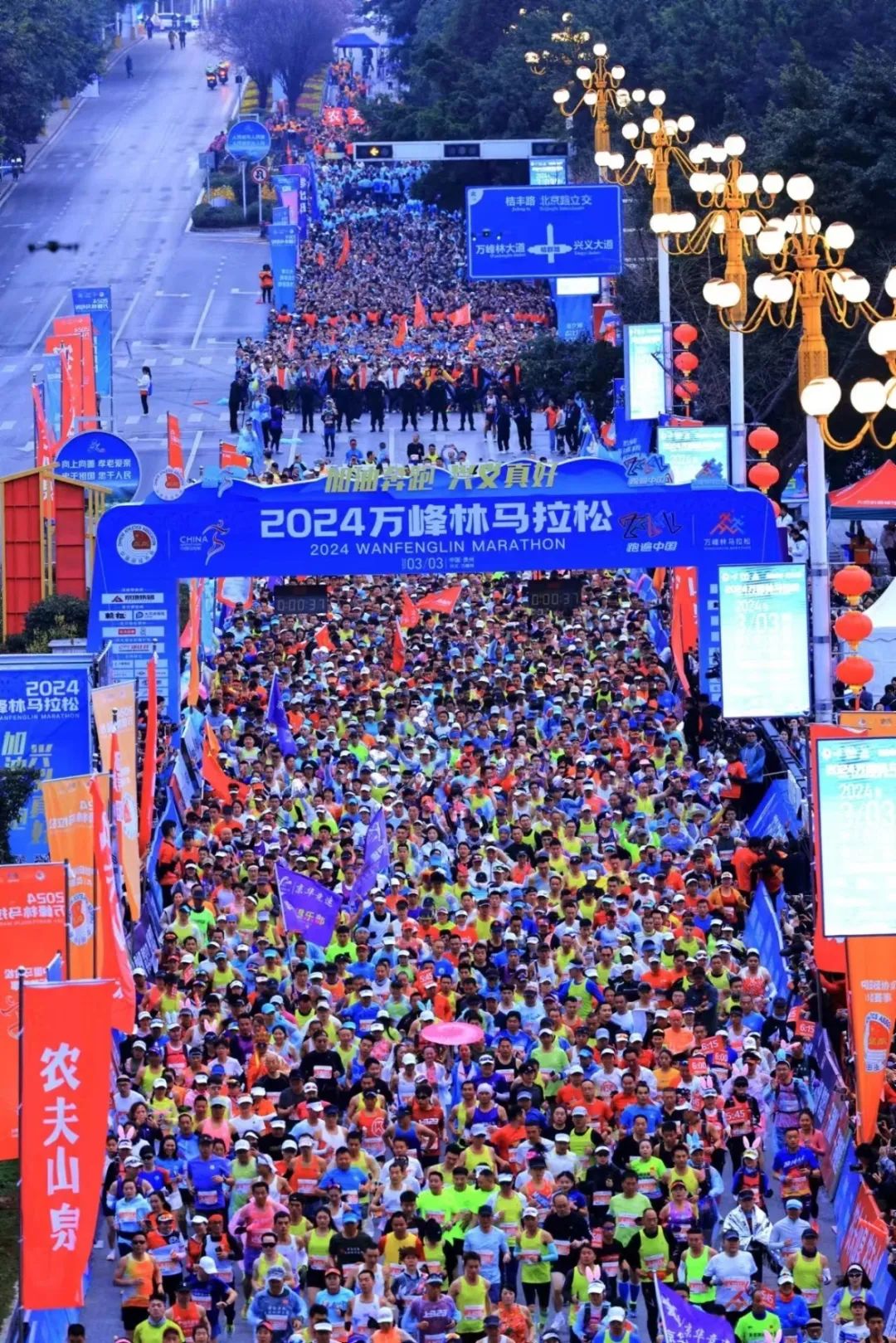 3月3日上午8点,2024万峰林马拉松赛在兴义市桔山广场鸣枪开跑。