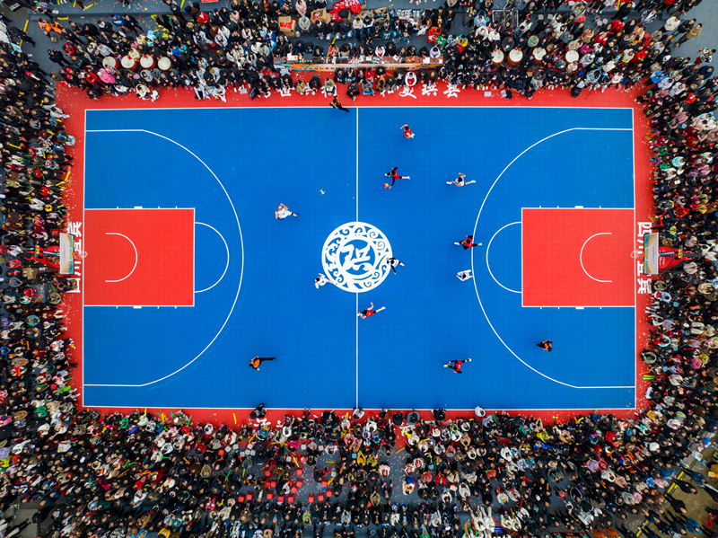 1月29日,四川省宜宾市珙县巡场镇三合村“村BA”现场(无人机照片)。