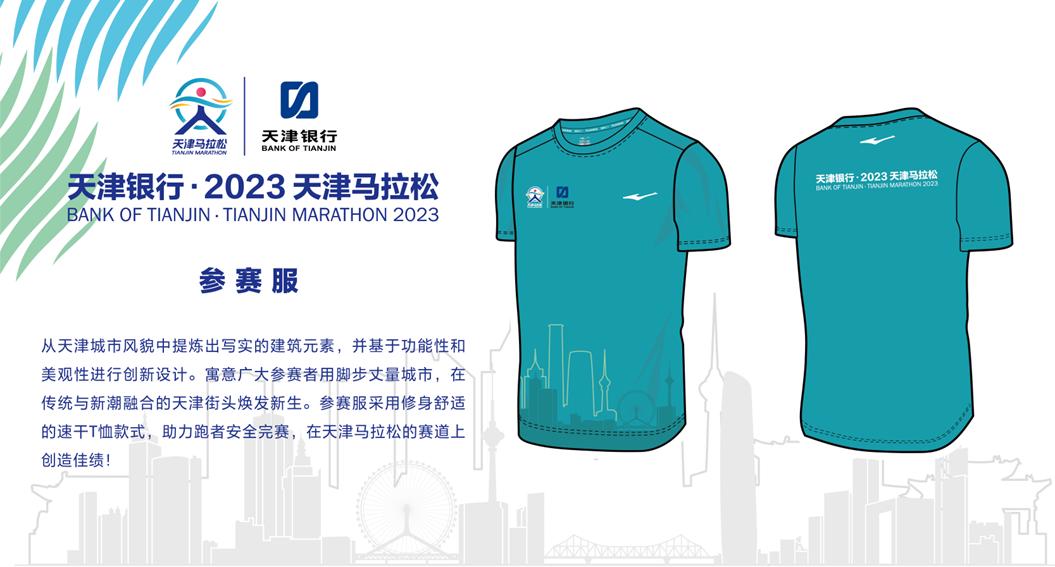 赛事标识(Logo)以天津的“天”字为基础元素,融入了抽象奔跑状态下的人物形态及天津地标性建筑“天津之眼”,通过三个特色元素的融合,充分展现天津的多彩魅力。
