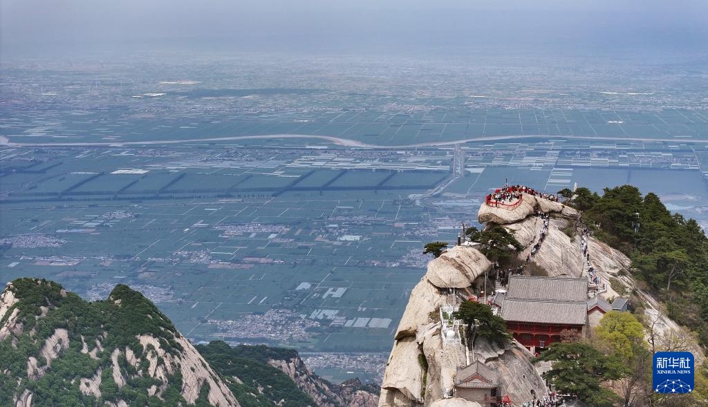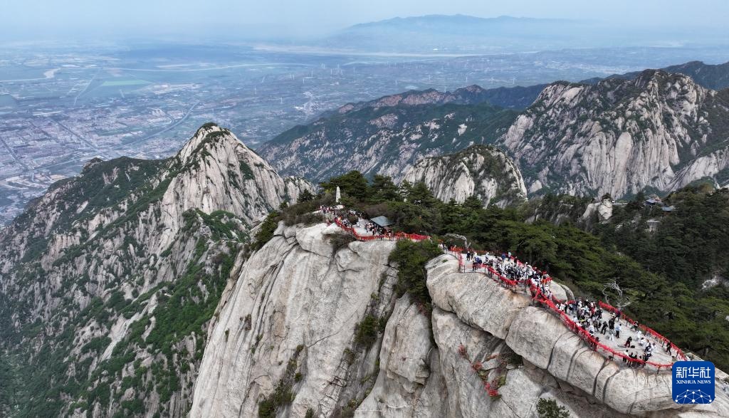 4月29日,游客在华山西峰游览(无人机照片)。