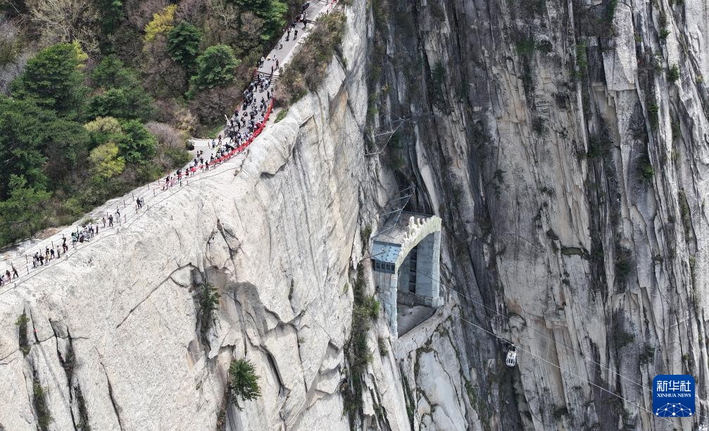 位于陕西省渭南市的西岳华山,以“奇险天下第一山”的美誉吸引众多海内外游客。华山西峰观光索道线路长4211米,最大相对高差近900米,自2013年投入运行以来,为登山观光旅游提供了新路径与新视角,受到游客欢迎。