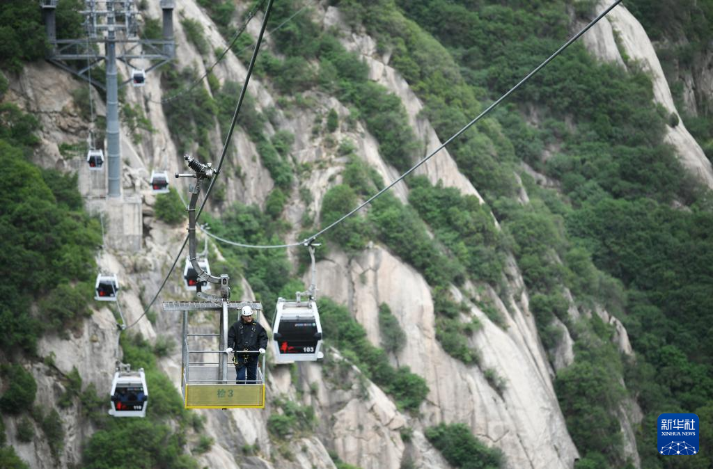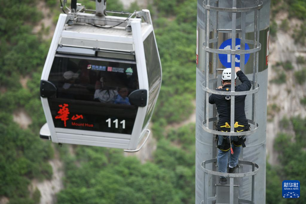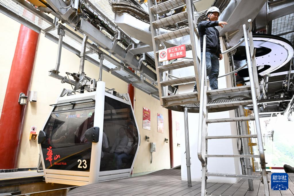 在险峰中平稳穿梭,需要对索道设备进行细致入微的维保。陕西太华旅游索道公路有限公司索道设备部机电维修工常年值守,每天对机械部件、电气系统、通讯设备等进行“体检”,确保运行安全。