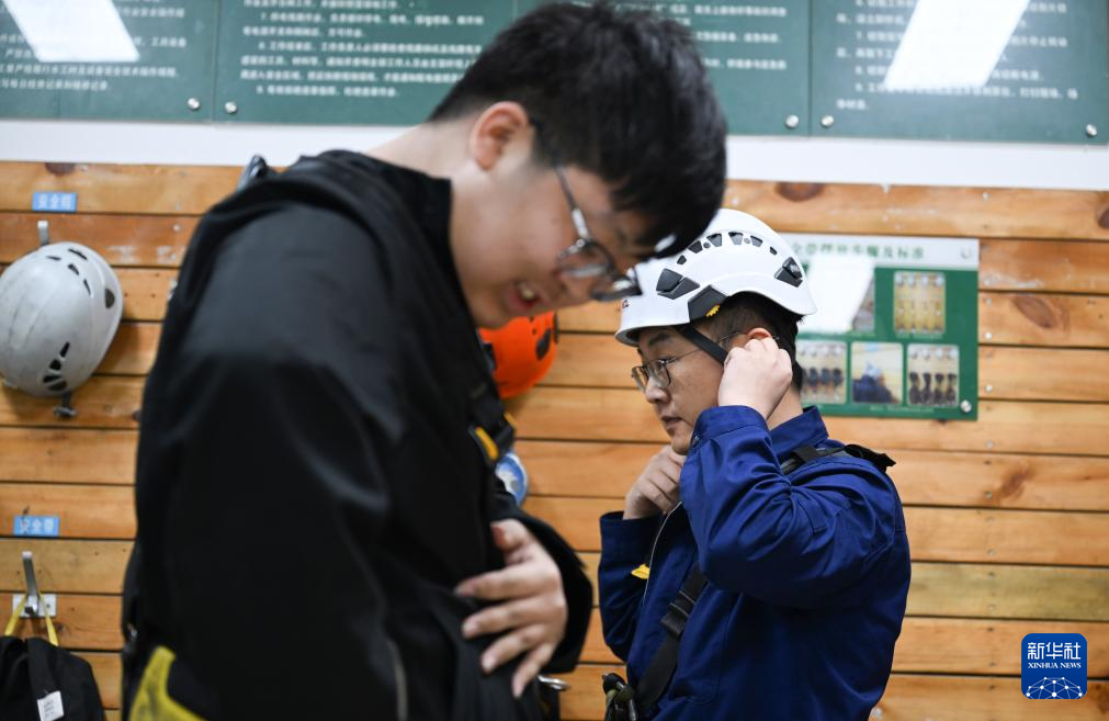 4月28日晚,机电维修工在出发巡检前穿戴防护设备。新华社记者 张博文 摄