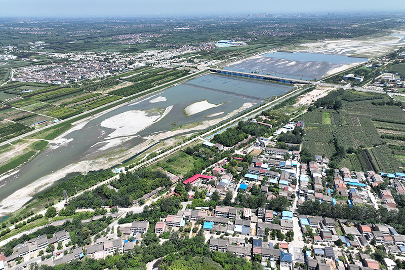 这是黄池沟配水枢纽旁的黑河景色(7月16日摄,无人机照片)。新华社记者 邵瑞 摄