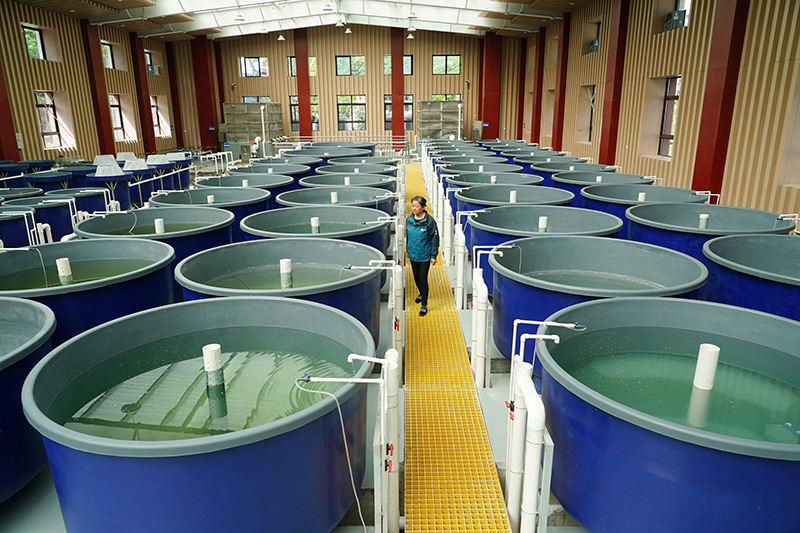 这是黄金峡水利枢纽工程配套建设的鱼类增殖放流站(2022年4月19日摄)。新华社记者 邵瑞 摄