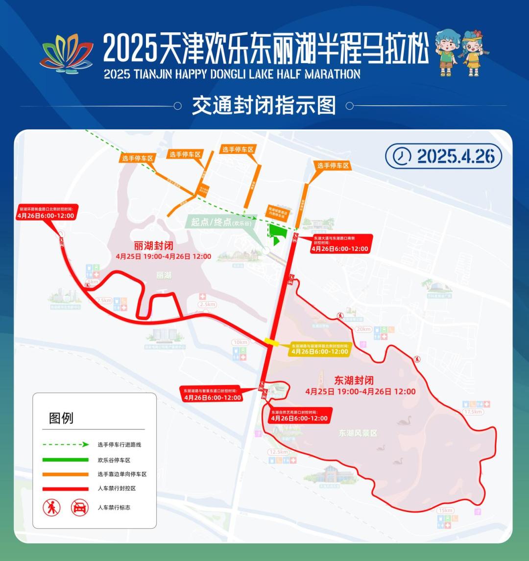 一、为确保赛事起终点搭建、拆除及赛事期间相关活动的正常进行,属地公安交管部门将对东丽区东丽湖路、丽湖环路、迎乐路部分路段采取临时交通管控,除持有比赛专用证件的车辆,禁止其他车辆通行。(现场实际情况以公安机关指挥为准)