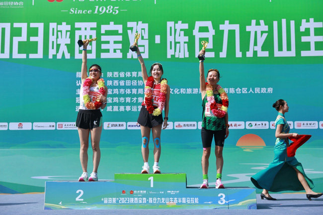 在半程马拉松女子组别中,选手潘素芳以1小时22分34秒的成绩夺得冠军,选手程敏、张军艳分别以1小时25分09秒、1小时26分09秒的成绩获得亚军和季军。