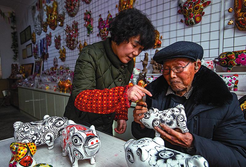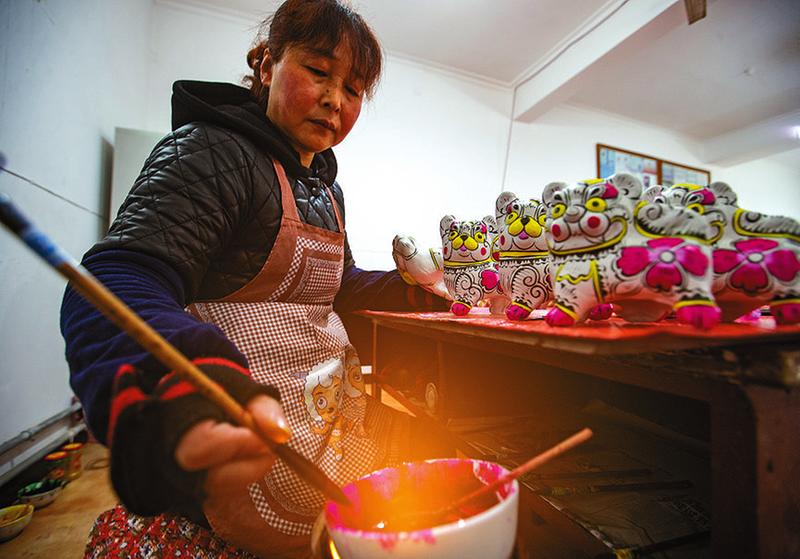 年轻一代手艺人不仅继承了老一代泥塑人的特点,而且更富有创新精神。每年过年前,都是胡小红最忙的时候。胡小红是凤翔泥塑的第五代传承人、胡深先生的女儿,她从小就跟随父亲学艺。农历己亥猪年,胡小红设计推出了福寿猪、福孝猪、笑笑猪、传统猪4种泥塑造型,在保留传统的同时,泥塑猪的色彩更向现代、时尚靠拢,有的作品用了半彩半素的方式上色,给人以清新亮丽之感。胡小红表示,现在一些年轻人对传统泥塑了解少,新设计的作品就是希望更多的人能够了解凤翔泥塑,满足不同年龄段人群的需求。