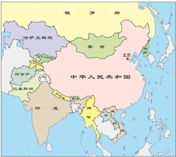 中国陆地与14 个国家接壤,按逆时针顺序分别为朝鲜、俄罗斯、蒙古、哈萨克斯坦、吉尔吉斯斯坦、塔吉克斯坦、阿富汗、巴基斯坦、印度、尼泊尔、不丹、缅甸、老挝和越南。目前,除与印度、不丹尚未签订边界条约外,我国已与12 个陆地邻国划定并勘定约2 万千米边界,解决了绝大部分定界问题。