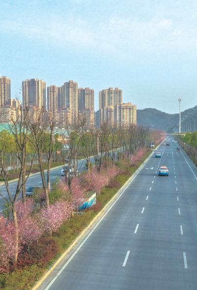 紫霄大道北起北京北路熊家湾转盘,南接林荫大道,全长5.4公里,道路两旁栽种有700株海棠,因而有“海棠大道”的美称。