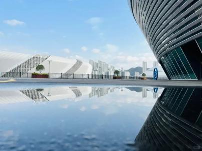 奥体中心分为综合体育馆、综合训练馆、青少年活动馆、游泳跳水馆四大场馆,在蓝天的映衬下,外观大气、造型新颖,是一处极具现代化的城市地标。尤其是综合体育馆,从空中俯瞰像一朵盛开的石榴花,也像一个滚滚向前的车轮,寓意着“石榴花开,车轮滚滚”。