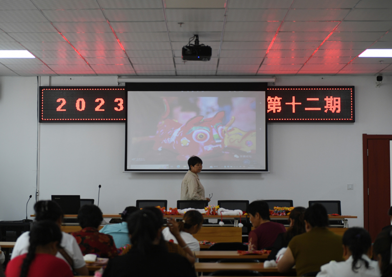 9月8日,在宝鸡西秦刺绣文化产业园,千阳继红职业技能培训学校的校长张继红在为绣娘们培训。陕西千阳县是国家级非物质文化遗产“西秦刺绣”的重要发祥地和传承地。近年来,千阳县将西秦刺绣作为助农增收的重要产业,推动非遗项目产业化发展,助力乡村振兴。