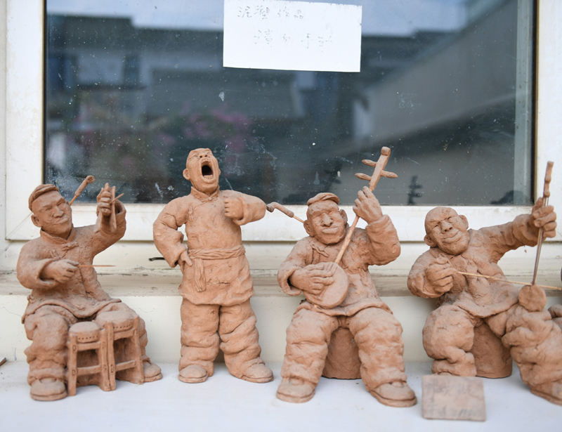 这是9月8日在西府里文化艺术村拍摄的泥塑作品。