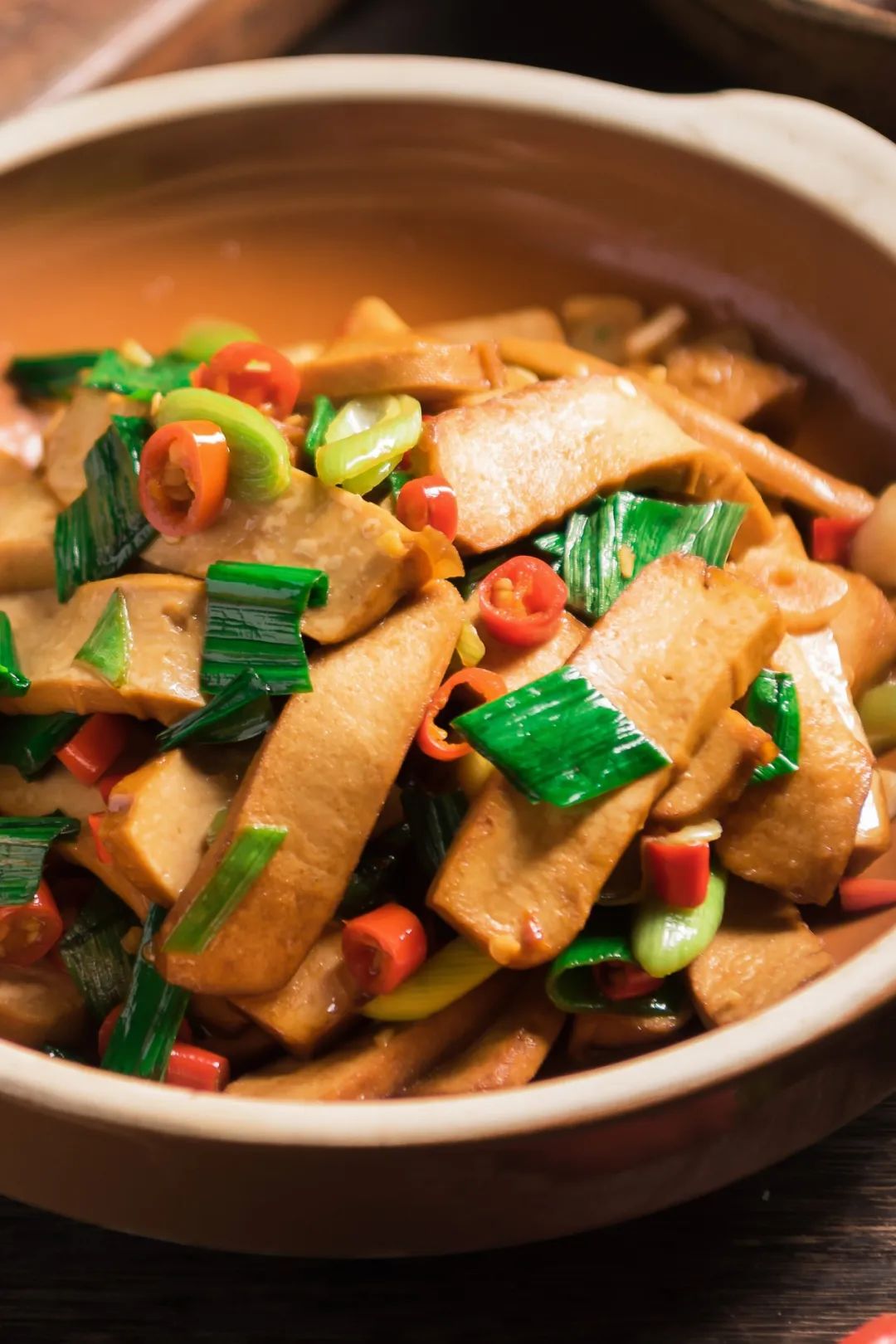 沿着醴陵往南寻味,就到了攸县,这里为湘菜贡献了一大经典要素——香干,湘东一带都很擅长做豆制品,而跟平江大多做成麻辣小零食的豆干(可以说是辣条前身)不同,攸县香干适合入菜,口感也更加嫩滑,用井泉水做出的豆干豆香味十足,和着大蒜叶炒一炒就已经很有韵味,要是把五花肉煸出油脂再加豆干合炒,这一道豆干简直比肉还香。