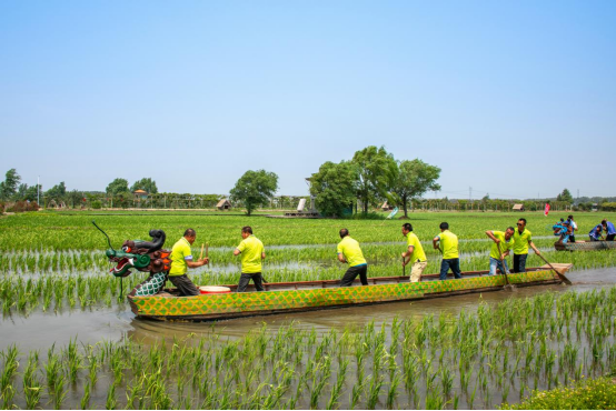 农民在水稻田中赛龙舟。新华网发 李永宏摄