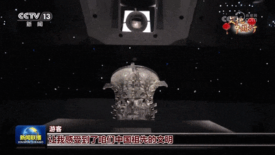 展厅中,何尊的铭文通过投影的方式震撼呈现,游客可以清晰看到铭文中的“中国”二字。