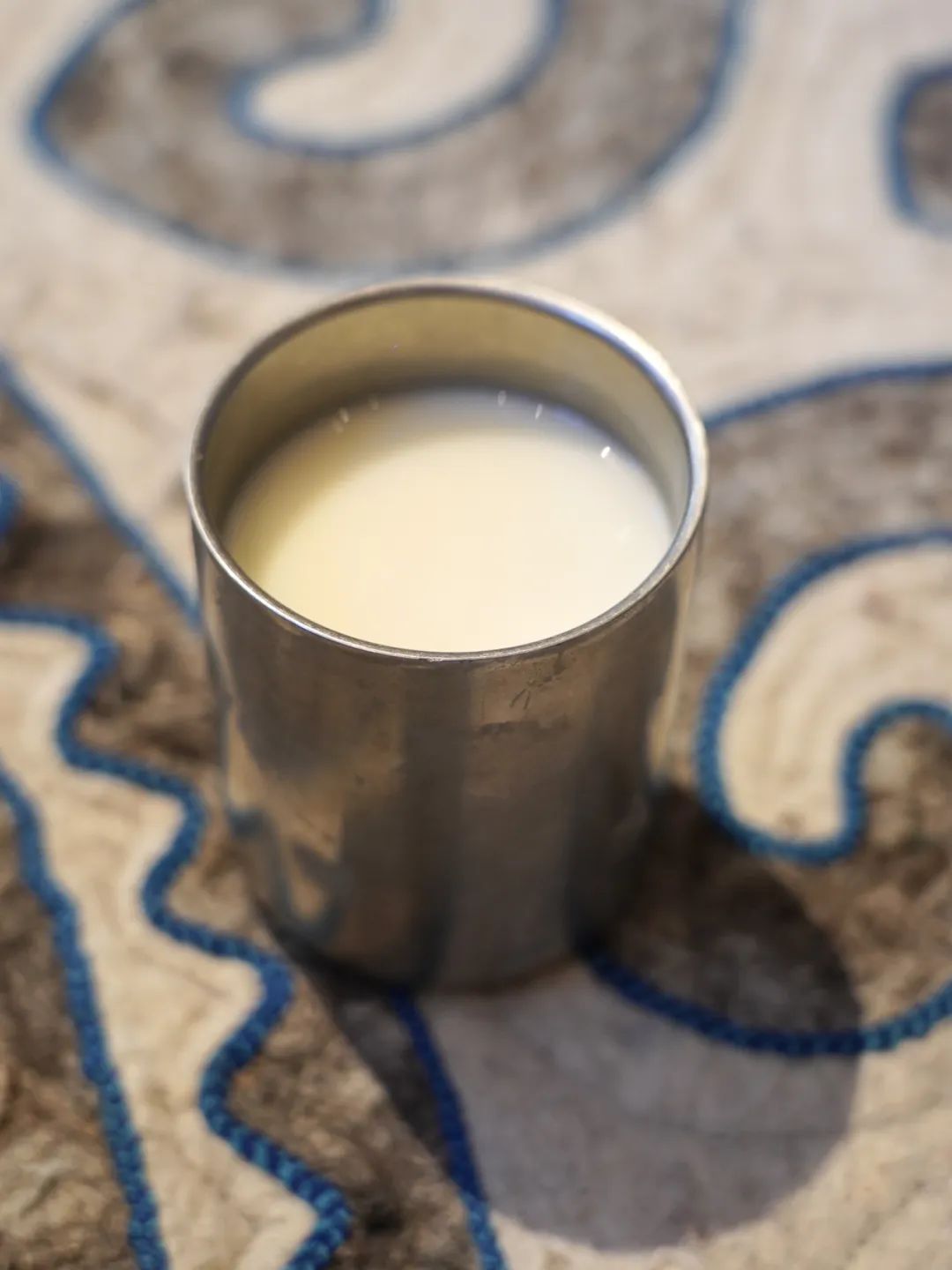 在菜单上看见骆驼发酵奶的第一眼,我以为是酸奶质地,没想到像牛奶一样,入口丝滑,有种淡淡的酸味儿。建议搭配馕、酥油。