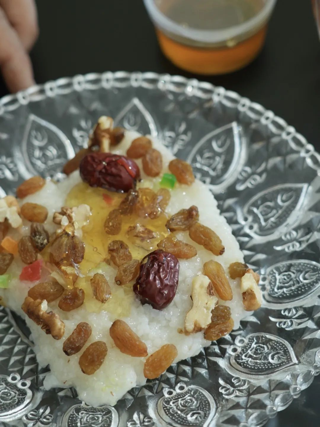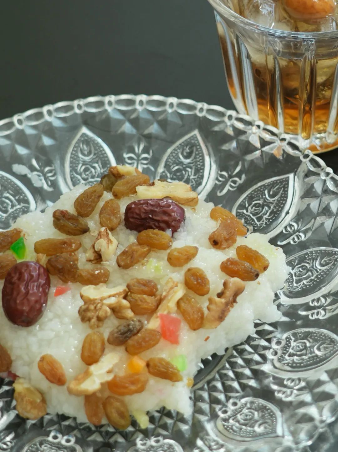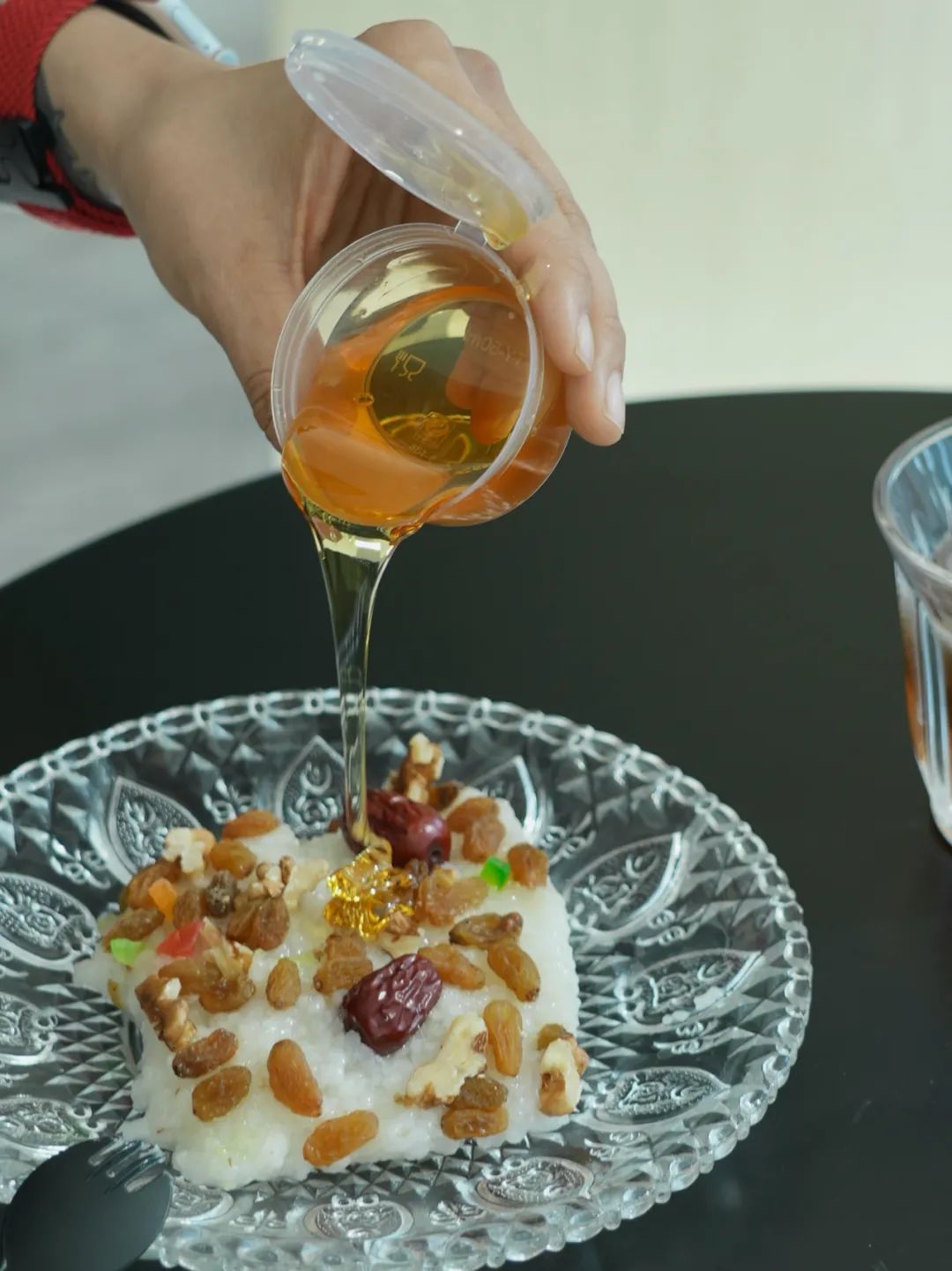 我特意尝了尝凉糕,它以糯米为核心原料,搭配葡萄干、核桃、坚果、红枣,馅料很是丰富。一块更比六块强想方设法让你“多吃点”。