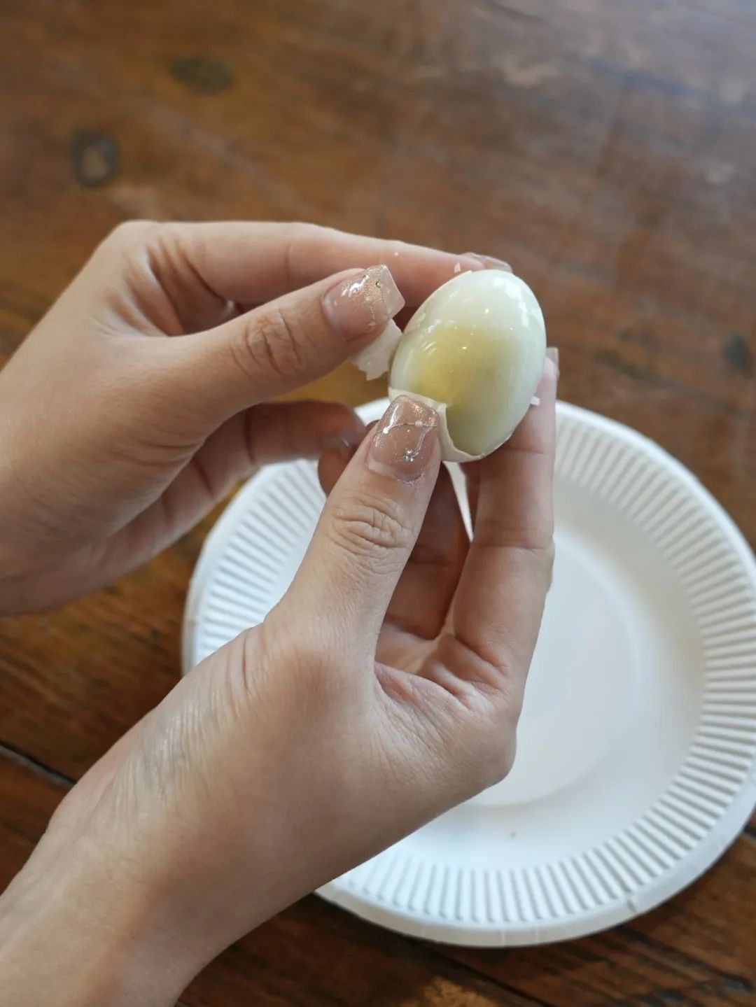 烤好的蛋被一分为二,焦香气瞬间扑鼻而来。先尝烤鸡蛋,口感比煮鸡蛋更紧实。再来个烤鸡蛋的“家庭分享版”——烤鹅蛋,个头儿是普通鸡蛋的两倍大,蛋清很特别,呈半透明状,吃起来很筋道!
