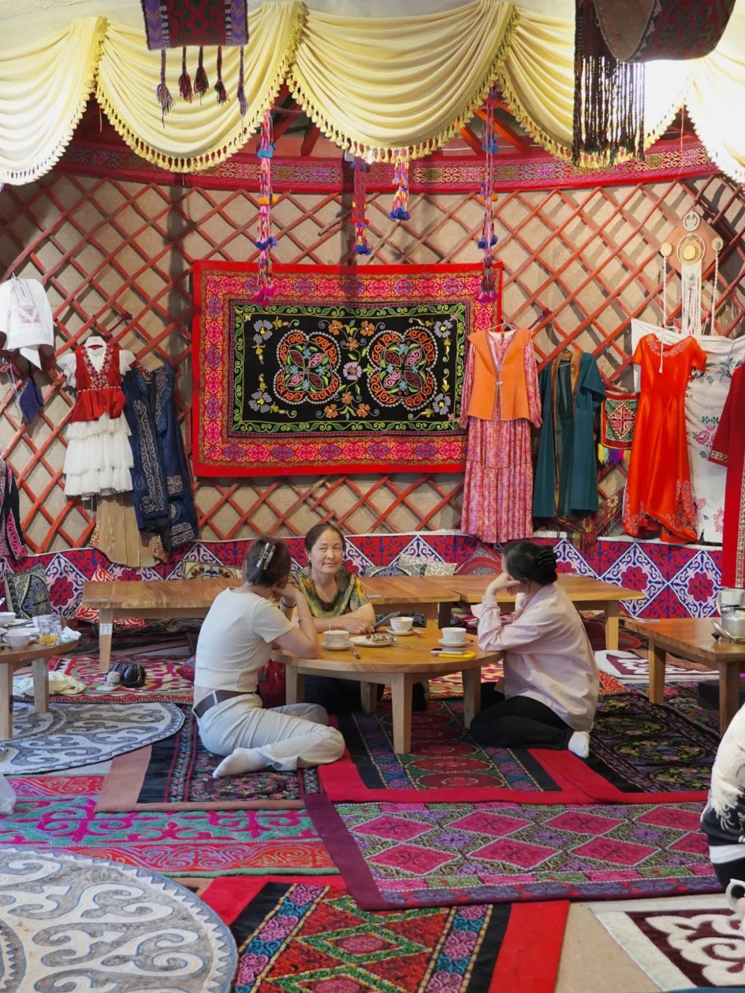 这家以哈萨克毡房为灵感的餐厅,脱鞋入座,换上哈萨克族服装沉浸式体验去朋友家做客的感觉。