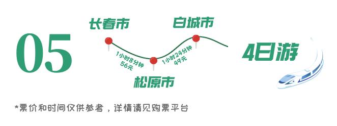 从长春出发,搭乘便捷高铁,开启美妙旅程,约40分钟可达吉林市,开启在北山公园的悠然漫步,于松花湖景区领略湖光山色。前往长白山北景区,长春至长白山高铁约2.5小时,在这邂逅奇峰异景。去往延吉,二道白河到延吉通过敦化等地中转,也极为便利。在中国朝鲜族民俗园体验浓郁风情,逛水上市场感受烟火气。最后还要奔赴西部的草原与湿地,在查干湖看水清鱼跃、品渔猎文化,在向海国家级自然保护区赏芦苇摇曳、观飞鸟翱翔,与辽阔风光一同入画。一路高铁畅行,穿梭于城市间,尽览自然美景与人文魅力。